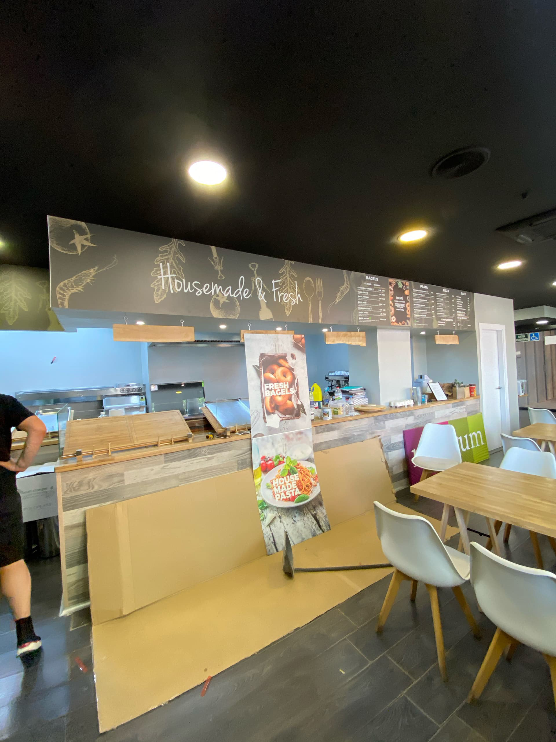 For this project, we acted as both branding agency and interior design lead. We developed the full corporate identity, including the logo, menus, promotional flyers, and custom stickers – from concept to print. We also planned and managed the brand’s social media presence. On the spatial side, we designed the entire restaurant concept and oversaw the renovation of the space in collaboration with our partner companies. This included not only the dining area, but also the full planning and construction of the kitchen and service counter.